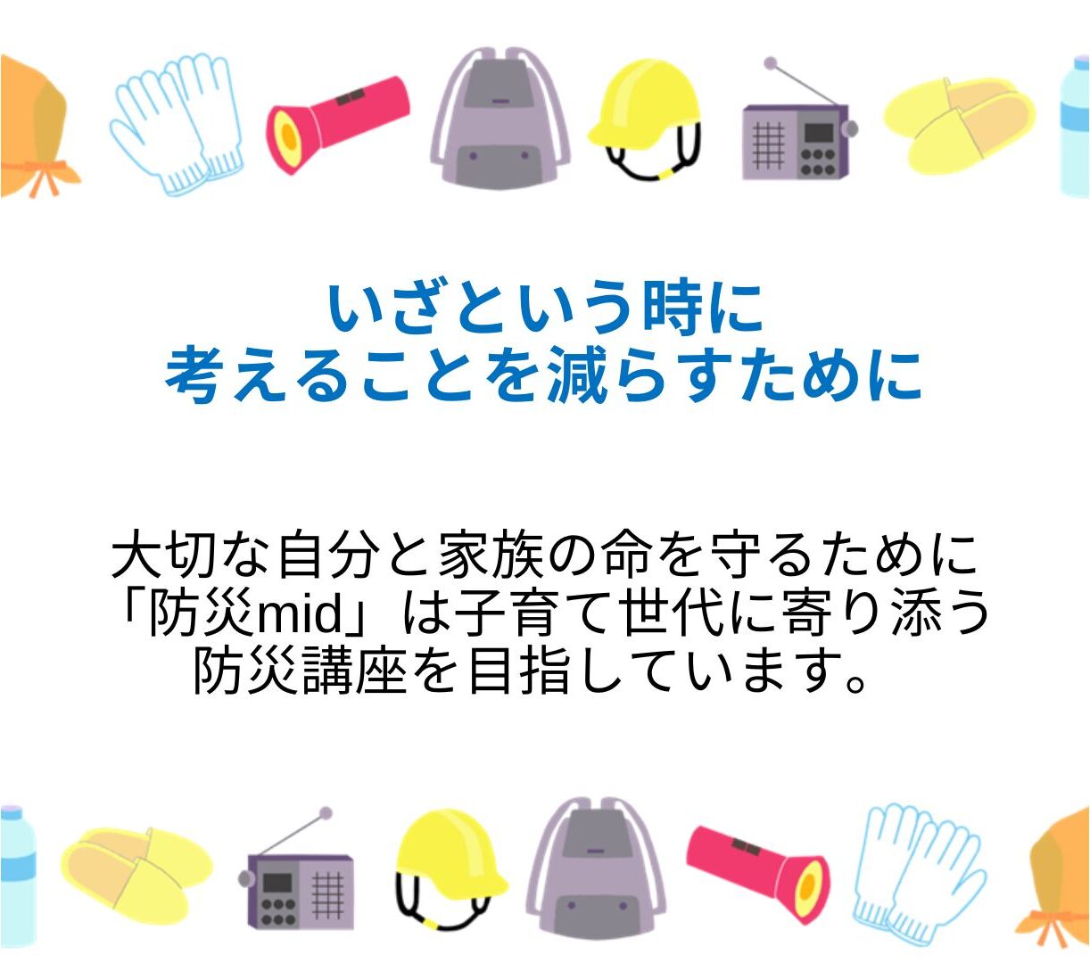 防災midは、2020年に発足した災害対策委員会から母子への防災普及啓発活動などを目的に独立し活動しています。